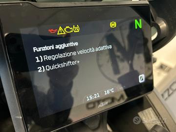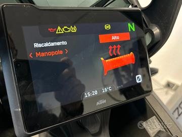 Scadenza Bollo : 09/2026 | Scadenza Revisione : 10/2027| Gomme : ant. 50% post. 100% | Permuta : Sì | Normativa antinquinamento : Euro 5. Accessori : Cruise control adattivo, manopole riscaldate, cambio elettronico, bauletto originale KTM con schienale, barre paramotore Givi, protezioni laterali serbatoio, barra porta navigatore. Ulteriori informazioni: 12 mesi di garanzia. Possibilità di estensione garanzia da 12 a 36 mesi con assistenza stradale abbinando un finanziamento personalizzato. Valutiamo il ritiro del vostro usato. Moto in perfette condizioni. Il pneumatico posteriore viene sostituito prima della consegna. ATTENZIONE: è bene ricordare, benchè sia stata posta la massima cura per garantire la precisione e la correttezza dei contenuti di questa presentazione al momento della pubblicazione, essa non ha alcun valore in sede contrattuale.