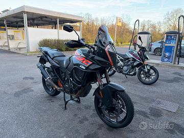 Salve a tutti. Come da titolo vendo ktm 1290 super adventure s del 2018. Moto praticamente full optional Tech pack completo che comprende. Sospensioni elettroniche attive Regolazione di carico del mono Mappe motore Mappe sospensioni Cruise controll Mtc (controllo elettronico del freno motore in scalata) Cambio elettronico + (in salita e in discesa) Hill older controll (partenza in salita assistita) Valvole sui pneumatici per controllo pressione gomme Manopole riscaldate su 3 livelli Sella guidatore powerparts ktm Ktm my ride (collegamento telefono per musica navigatore ecc) E altro che sicuranenre mi dimentico. Nel prezzo compreso due valige in alluminio originali ktm usate 2 volte. Moto appena uscita dal meccanico Lavori svolti. Maxi tagliando con candele e filtro del aria sportivo Gomma posteriore Kit catena corona e pignone. Terminale arrow Barre paramotore heed Cupolino sportivo fume (regolabile in altezza) Moto con 2 difetti Scarico segnato e sella rovinata da un prodotto ma dispongo del originale in perfette condizioni. Moto principalmente usata da me per tratti autostradali casa/lavoro. Vendo solo per passaggio a superduke 3.0 Valuto scambi appunto con ktm 1290 superduke 3.0 Prezzo trattabile dopo visione. Astenersi perditempo. Grazie