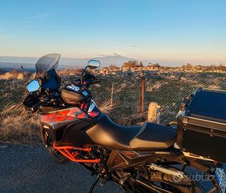 Vendo per passaggio a cilindrata minore, perfetta e senza un graffio (sempre tenuta in garage) ktm 1290 super adventure S, strafull, anno 2018 -Cupolino puig fumè con regolazione pomelli nuovo modello -Tris valige givi outback trekker -marmitta Akrapovic come in foto -Doppia sella originale e artigianale -Attuatore frizione OBERON -Fianchetti laterali paracalore come in foto -Piastra paramotore -Faretti supplementari -Cavalletto laterale maggiorato e Cavalletto centrale -gomme nuove dunlop mutant (€340.00) -mega tagliando (valore € 1500.00) dimostrabile eseguito a km 52219, presso KTM Raffadali (AG) -pronta per viaggiare e visionabile senza alcun problema dal vostro meccanico di fiducia! Ovviamente manopole riscaldate, cruise control ecc ecc Non scambio, non vendo accessori separatamente. Moto perfetta vendo e basta.
