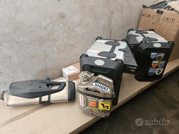 scarico akrapovic più scarico originale in dotazione, ste valige laterali e bauletto.