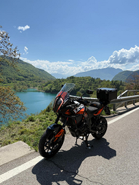 Moto pari al nuovo con 31.500km tagliandata certificati, nessun graffio totalmente originale. Sospensione elettronica, manopole,sella riscaldati , gomme 80 x ? set di valige. Catena corona pignone più pastiglie freni anteriori posteriori nuove, olio filtri con 4,500 km all'attivo . Doppie chiavi, libretto manutenzione, kit porta documenti originale. Regalo abbigliamento completo valore 600 euro,casco integrale pari al nuovo valore 800 euro casco aperto valore 150 euro.