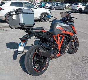 KTM 1290 Super Duke GT, 2017, km. 39mila, perfette condizioni, unica ed esclusiva con Adesivi personalizzati, Paramotore, Terminale Akrapovic, Portapacchi e Bauletto, Tappi ergal, Controllo di trazione e di impennata, ABS, 3 mappe motore, Quickshifter, Sospensioni elettroniche WP anteriori regolabili in marcia, Manopole riscaldate. La moto è stata tagliandata a km. 35mila (olio Motul 7100, filtri, pasticche Brembo ant. e post, catena corona e pignone DID), revisione effettuata ad aprile 2025, bollo scadenza 01/2027. Vendesi €8600