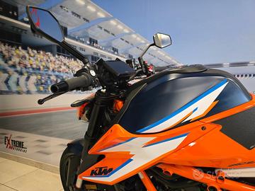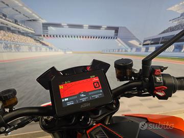 La Super Duke R, soprannominata "The Beast 3.0", è una Maxi-Naked rivoluzionaria con motore bicilindrico 1301cc LC8 che eroga ben 180 CV, Traction control, sospensioni WP Apex completamente regolabili, strumentazione TFT interfacciabile con lo smartphone, piattaforma inerziale a 6 assi, che sovraintende ai tre Riding Mode Rain | Street | Sport, ai quali si aggiunge il Track, optional, come optional è il Quick Shifter bidirezionale, due chicche irrinunciabili per chi pensa di portare "La Bestia" in pista.