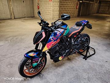 vendo ktm 1290 super duke r 2019 km 35.000 tenuta maniacalmente sempre tagliandata ogni 5.000 km . la moto monta grafica Red bull , unghia monoposto con grafica dedicata ,puntale puig, lenti protezione faro, cambio quickshifter. tagliandone dei 30.000 con registro valvole eseguito con fattura dimostrabile. la moto è perfetta qualsiasi prova venite pure con il vostro meccanico di fiducia. mai andata in pista , usata solo x giri domenicali .