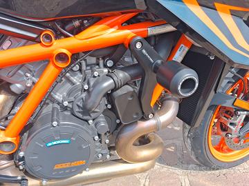 Ktm 1290 super duke R Evo (superduke) pari al nuovo, nessun segno e o graffio, unico proprietario, comprata a km 0 a novembre 2023, alla ktm di Viterbo, tagliandi ufficiali a 1000 km, 1 anno 9100 km, 2 anni 17200 km (oggi), in più fatti cambio olio intermedi 5000 e 13000 km, la moto ha i seguenti accessori e o optional: tech pack (1200€), cupolino protezione strumentazione (70€), lente protezione faro power bronze (45€), protezione steli forcella in carbonio, griglia protezione radiatore Evotech Performance (100€), tamponi protezione telaio doppio attacco Evotech Performance (320€), pellicola protezione display + una di ricambio, come detto in precedenza fatto adesso il tagliando con motul 7100 e messo i fitri nuovi n°3, filtro aria Sprintfilter p08 (120€), terminale di scarico in titanio Mivv omologato (400 €), borsa sella originale ktm (170€), kit abolizione pedane (45 €), cover monoposto originale ktm (150 €), portatarga completo ricavato dal pieno Evotech italy (220 €), pneumatici michelin power GP nuovi , tante cose che non ricordo, circa 3000 € di accessori. Bollo pagato. Invio foto e video a richiesta, tutti i pezzi originali presenti. Permuto per moto supersportiva, ed altro, di valore superiore alla mia, con differenza da parte mia, max 15000 km.