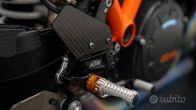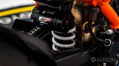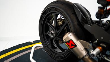 Accessori: Scarico completo Akrapovic Cupolino in carbonio Leve regolabili Cerchi forgiati Mappa ufficiale KTM Sospensioni Apex ad alta scorrevolezza Codone in carbonio Monoposto Omologata per uno Versione numerata IMPORTANTE: se sei interessato, contattaci telefonicamente oppure invia una email a info@motoargento.com o scrivi un messaggio e inserisci la tua email e numero di telefono. Moto Argento è l'unico Showroom d'Italia unicamente specializzato in moto Supersportive, Hypernaked e da Collezione. SCOPRI LA FORMULA 'MAGIC 30'. Con la nostra esclusiva offerta speciale MAGIC 30, paghi solo il 30% e puoi metterti alla guida della tua emozione su due ruote, senza preoccuparti di un grande investimento iniziale. PROMOZIONE 'PARTENZA APPROVATA'. Nel prezzo d'acquisto della tua moto, includiamo: - SCONTO 50% CAMBIO GOMME - TARATURA SOSPENSIONI - TAGLIANDO - SET PASTIGLIE FRENI - FOTO E VIDEO RICORDO - SCONTO DEL 25% SUGLI ACCESSORI MOTO ARGENTO APPROVED PERFORMANCE. Ogni moto viene attentamente controllata da tecnici esperti prima della consegna attraverso 56 controlli certificati e fotografati, con video per ogni lavorazione eseguita. Il tutto, garantito da una certificazione scritta. GARANZIA SPECIALE. La nostra garanzia di 12 mesi è speciale perché preserva il valore nel tempo. Per i primi 5000 km, anche i materiali di consumo come le gomme, le pastiglie dei freni e le guarnizioni della forcella sono coperti. Inizierai il tuo viaggio con la tua moto al 100% sicura. CONTATTACI ORA. Fissa subito un appuntamento, uno dei nostri consulenti sarà esclusivamente dedicato a te e riceverai immediatamente il tuo omaggio personalizzato. Non vediamo l'ora di offrirti tutta l'assistenza necessaria per garantire un'esperienza d'acquisto unica, esattamente come sarà la tua prossima moto.