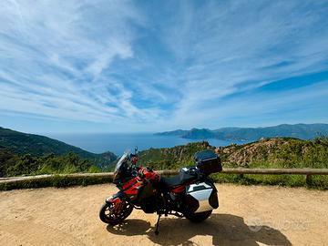 Vendo per passaggio ad altro modello, completa di sella pilota e guidatore PP ( + originale), 2 valigie laterali originali KTM, Scarico SPARK omologato (con originale incluso), Cambio elettroassistito, regolazione coppia motore in fase di rilascio (MSR), Parabrezza regolabile originale + cupolino più piccolo fumè della versione R, cruise control, sospensioni semi-attive, riding mode, cornering ABS, traction control, piastra posteriore portabauletto con attacchi givi, tenuta con cura e regolarmente tagliandata. La moto ha subito una scivolata nell'anno 2024, riparata completamente in officina non ufficiale. Rimangono solo alcuni segni estetici che non compromettono meccanica e affidabilità. La moto è assicurata e circolante quindi i km potrebbero cambiare dalla descrizione. Sempre custodita in box e pronta all'uso. Disponibilità ad altre foto/video in privato.