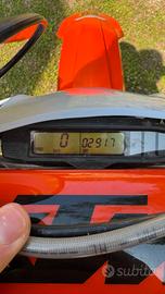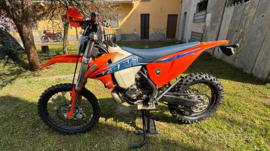 Acquistata presso concessionario KTM Farioli di Bergamo a fine Dicembre 2022. La moto ha 2917 km, con 84.5 h. Tagliandata ogni 30h e sempre con olio Motorex. Monta all'anteriore gomma originale Maxxis e al posteriore Metzeler 6 days con praticamente nessun' ora di utilizzo, entrambe con camera d'aria. Faro led anteriore, manopole Scott, parafrizione + copricarter + portatarga e paraforcellone Polisport. Portatarga e frecce originali disponibili. Utilizzata principalmente in fettucciato. Vendo causa lavoro.