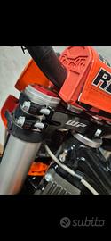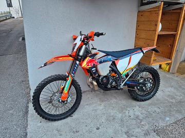 Vendo ktm 150 exc tpi modello 2022 immatricolato 05/2023 con all'attivo solo 80 ore. Monta kit sposta inniettori Tecnallmec con eliminazione miscelatore (funziona come un carburatore). Ventola al radiatore. Piastre di sterzo ktm powerparts regolabili. Forcelle preparate con trattamento steli DLC nero alta scorrevolezza e cartucce cone valve 6500 cartuccia chiusa. Monta mousse balls Mrwolf da estermo al posteriore e mousse al anteriore. Disco del freno posteriore pieno con protezione. Copertina sella rinforzata. Protezioni carter frizione e volano. Protezioni telaio e forcellone. Cinghie anteriore e posteriore. Portatarga sgancio rapido. Faro anteriore a led. Vendo tagliandata e con gomma nuova. Insieme alla moto ovviamente fornisco tutti i pezzi originali, le plastiche, un'altra marmitta nuova più quella per fare la revisione kit frecce specchietti portatarga. Cartucce e piastre originali. Prezzo 6000 euro originale. Per averla con tutte le cose elencate se ne parla in fase di vendita. Eventualmente in caso di acquisto possibilità di trasporto presso il proprio domicilio zona Nord Italia.