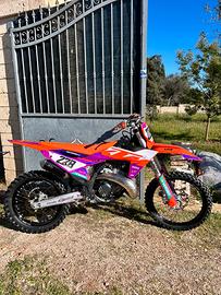 Vendo bellissima KTM 250 2 tempi modello 2024 per passaggio a diversa cilindrata/progetto. La moto è stata tenuta con cura maniacale e si presenta in ottime condizioni generali. Dettagli Tecnici: Ore totali: 64 ore da contaore originale. Motore: Pistone sostituito a 50 ore (attualmente ha solo 14 ore di utilizzo). Proprietari: 2 (incluso l'attuale). Trasmissione: Catena nuova, appena sostituita a 63 ore. Gomme: 60% Accessori inclusi: Doppio kit di plastiche (quello originale e quello visibile in foto con grafiche personalizzate). La moto è pronta all'uso, non necessita di alcun intervento meccanico. Disponibile per qualsiasi prova con vostro meccanico di fiducia.