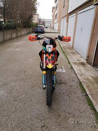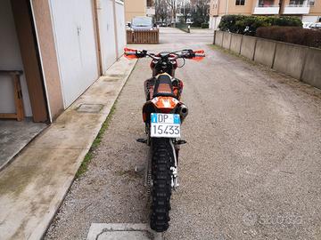 Vendo stupenda KTM 250 EXC anno 2010 con sole 110 ore totali. Il pistone è stato sostituito a 70 ore (solo per scrupolo - non era necessario). Ad ogni uscita ho sempre lavato la moto e il filtro aria. Asciugatura con aria compressa in tutti i componenti più una passata finale con il panno in microfibra. Infine un po di WD40 nelle parti mobili (es. leve freni, acceleratore, pedale accensione, pedaline..) Monta catena corona e pignone nuovissimi. Pacco lamellare VFORCE4 appena montato. Assieme alla moto cedo altre plastiche e un disco anteriore nuovo + pastiglie Braking che purtroppo non ho avuto tempo di montare. Aggiunti nuovissimi di recente terminale ProCircuit e gomme nuove (non visibili in foto). Moto sempre coccolata e trattata come una principessa. Impeccabile, potente e divertente.