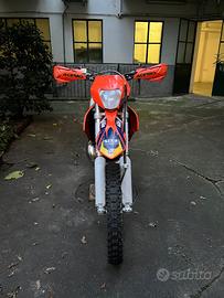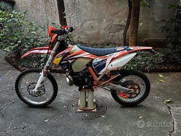 Vendo bellissimo Ktm exc 300. La moto è stata portata da 250 a 300 con il kit offerto da Ktm, per un utilizzo più da enduro. È stato fatto un restyling con plastiche del 2014 La moto ha 298.6 ore e a 275 ore sono stati sostituiti i cuscinetti da banco e il cuscinetto dell'asta del cambio lato pignone. Inoltre è stato montato un pistone Wossner grafitato e rifatto il cilindro da htm racing, quindi è sostanzialmente riportato a nuovo. Monti quasi ogni powerpart in ergal arancione e il paracolpi è quello originale ktm, non montato ho anche un vecchio copri espansione in carbonio. La moto viene venduta con delle ruote più nuove di quelle in foto 60% la posteriore e 70% l'anteriote che monto a breve. In più ho un po' di oggetti accumulati col tempo.
