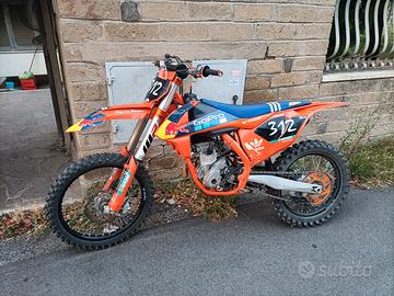 Insieme alla revisione motore sono state applicate grafiche nuove, sostituita catena trasmissione e batteria nuova. Successivamente revisionati mono e forcelle, e tutta la frizione, con relativa sostituzione dischi (originali KTM farioli).
