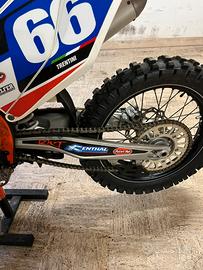 Vendo KTM 250 SX-F anno 2017, solo uso pista (non immatricolata), tenuta maniacalmente e pronta all'uso. La moto è stata utilizzata esclusivamente da mio padre per allenamento amatoriale e ferma in garage da alcuni mesi, sempre tagliandata con regolarità.