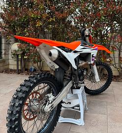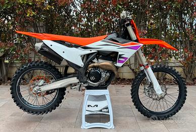 Vendo Ktm Sx-F 250 2024 (comprata nuova, con fattura, da concessionario ufficiale) per cambio moto. La moto attualmente ha 120 ore. A 89 ore è stato sostituito il pistone e la frizione. Inoltre anche la trasmissione completa è stata sostituita a 115 ore e a 110 è stato revisionato completamente il mono. Sono sempre stati eseguiti tutti i lavori di manutenzione da meccanico e sospensionista specializzato, ogni lavoro è stato segnato su manuale. La moto è stata tenuta maniacalmente, tagliando ogni 7/8 ore e ogni componente di consumo è sempre stato sostituito/revisionato regolarmente. La moto viene venduta con forcelle originali praticamente nuove (non quelle in foto) hanno solo 25 ore di utilizzo. Insieme vendo anche le seguenti parti: - 4 filtri aria - Kit plastiche aggiuntivo (un po' rovinate) - Sella Factory NO PERDITEMPO, prezzo leggermente trattabile.