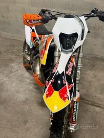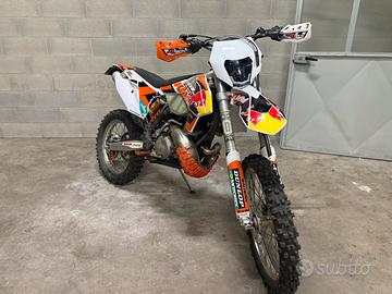 Vendo Ktm exc 300 2tempi del 2015 perfettamente funzionante moltissimi accessori che do con la moto anche tutti i pezzi originali motore con 25 ore telaio 210 ore totali moto usata solo per giri in enduro nel tempo libero monta 2 mousse anteriore più posterioire gomme al 80 % più due gomme semi nuove posteriori più una anteriore, cartucce forcelle ammortizzatori anteriori ohlins più due polmoni uno originale e uno fmf , pedane maggiorate leve anti rottura diversi accessori moltissimi pezzi di ricambio originali prezzo 5200euro
