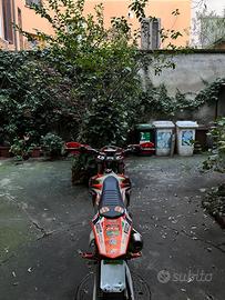Monti quasi ogni powerpart in ergal arancione e il paracolpi è quello originale ktm, non montato ho anche un vecchio copri espansione in carbonio.