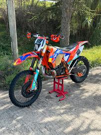La moto monta molti accessori per l'enduro come mousse michelin, paramani completi , faro led ,accessori in ergal, frizione rinforzata reckluse, sospensione tarate da enduro da Zucco.