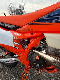 KTM EXC 300 Champion Edition anno 2025, moto nuova da immatricolare, moto allestita fiera, marmitta completa OXA Racing, cerchi con mozzi in ergal, pedane ergal, tubi in silicone, pararadiatori in acciaio, leve freno e frizione regolabili. Possibilità finanziamento da 12 a 60 mesi. Non si accettano permute.