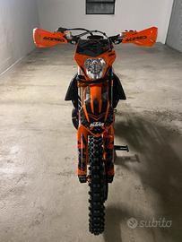 Moto perfetta e pronto hard enduro. monta tutte le protezioni possibili, mousse ant e post, peso al volano 250 gr. Scarico completo fresco cromato con terminale fresco black Edition.