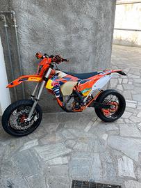 Moto venduta in configurazione enduro ma disponibile anche kit motard con impianto frenante, corona e catena dedicati con un sovrapprezzo.