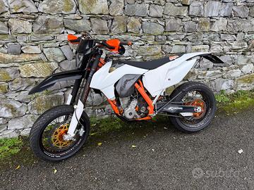 vendo per inutilizzo ktm exc-f 350 2012 con omologazione motard e enduro a libretto, moto guidabile con patente a2, condizioni ottime praticamente mai usata in fuoristrada, ore totali 350, pistone con 100 ore circa uso stradale. La moto monta cerchi faba con gomme mutant, disco 320mm, piastre cnc, cambio elettronico sp electronics, cover serbatoio in carbonio e tanti altri accessori come da foto. Viene venduta con tagliando e gioco valvole appena fatti, forcella appena revisionata, nessun lavoro da eseguire. Valuto permute con 125 o 450 cross ktm husqvarna o Yamaha.