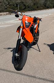 Vendo KTM exc 350 motard del 2012. La moto è funzionante, di recente sono stati fatti lavori presso concessionario specializzato (con annesse fatture). Motore aperto a dicembre ed era apposto, cambiate tutte le guarnizioni e inoltre stati cambiati batteria, cuscinetto ruota libera, motorino d’avviamento e carter lato accensione (presenti tutte le fatture). La moto monta: ~Centralina mappata (cedo anche l’originale); ~Scarico Dominator (cedo anche l’originale); ~Specchietti a manubrio (cedo anche gli originali); ~Kit di plastiche 2016 (presenti anche kit di plastiche redbull); Rapporti 14-42 (cedo anche un pignone da 13 denti); Gomme al 80% Prezzo leggermente trattabile