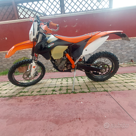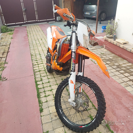 Vendo come da titolo ktm 350 exc-f 2012, alla quale ho rifoderato la sella, aggiunto ventola raffreddamento originale ktm e para collettore. All attivo ha 16000 km, il motore è reattivo e grintoso, possiede due mappature, usata pochissimo, l'unico difetto è che non possiede la ruota libera sul volano quindi l avviamento è puramente a pedivella, poi presenta qualche graffio. Insieme alla moto cedo anche uno pneumatico posteriore Michelin semi nuovo e para radiatori. PREZZO TRATTABILE DOPO VISIONE