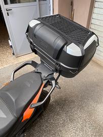 La moto porta un bel bauletto in cui possono entrare 2 caschi integrali senza problemi più qualche altro piccolo gadjet, il bauletto è givi monolock di facile aggancio/sgancio a singola chiave.