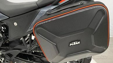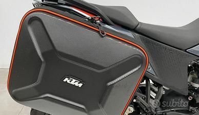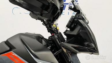 DEK:[10533766] OTTIME CONDIZIONI COMPLETAMENTE ORIGINALE - BORSE LATERALI ORIGINALI KTM - SCARICO AKRAPOVIC - ABS - SCHERMO TFT - FARI FULL LED Motore: monocilindrico da 373 cc, raffreddato a liquido, 4 valvole per cilindro, distribuzione DOHC, alimentazione a iniezione elettronica con corpo farfallato Ø 46 mm. Potenza: circa 44 CV a 9.000 giri/min. Coppia: circa 37 Nm a 7.000 giri/min. Trasmissione: cambio a 6 marce, frizione antisaltellamento PASC assistita, trasmissione finale a catena. Telaio e ciclistica: telaio a traliccio in acciaio con telaietto posteriore imbullonato; forcella anteriore WP APEX a steli rovesciati Ø 43 mm, escursione circa 170 mm; monoammortizzatore posteriore WP APEX regolabile nel precarico e nel ritorno, escursione circa 177 mm; cerchi da 19'' anteriore e 17'' posteriore, con pneumatici 100/90-19 e 130/80-17; freno anteriore a disco Ø 320 mm con pinza radiale a 4 pistoncini, freno posteriore a disco Ø 230 mm con pinza a 1 pistoncino, ABS cornering disattivabile in modalità Off-Road. Altezza sella: circa 830 mm. Peso: circa 172 kg in ordine di marcia. Serbatoio: capacità circa 14,5 litri. Stile: adventure compatta e leggera, linee ispirate al mondo rally, carenatura aerodinamica con parabrezza alto, posizione di guida eretta e comoda, ideale per lunghi viaggi e percorsi misti. Carattere: progettata per chi cerca una moto versatile e facile da gestire, adatta sia ai tragitti quotidiani sia all'avventura; motore brillante e affidabile, ciclistica equilibrata e sospensioni di qualità, dotazione elettronica completa con controllo di trazione, ABS cornering e modalità Off-Road; un'ottima scelta per chi vuole una vera adventure leggera ma performante. La motocicletta viene consegnata con TAGLIANDO e REVISIONE in ordine, GARANZIA DI 12 MESI con DICHIARAZIONE DI CONFORMITA' a norma di legge. VALUTIAMO IL