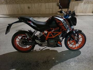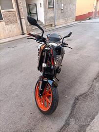 Vendo duke 390 La moto è stata appena gommata con gomme Pirelli con attuali 500km percorsi e revisionata alla forcella Appena 9900 km,guidabile con patente A2. Adatta a neofiti in quanto molto leggera e maneggevole Prezzo trattabile.
