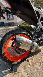 Vendo stupenda Ktm duke 390. La moto è stata acquistata e usata pochissimo poiché mi sono trasferito in altra regione. È stata sempre tenuta in garage. È stata puntualmente revisionata e le ho fatto fare un tagliando circa 2000 km fa da K-Monza, meccanico ufficiale Ktm della mia zona. Ho montato: copri-radiatore Ktm originale Porta targa accorciato Specchietti abbassati al manubrio Scarico completo mivv OVVIAMENTE CONSEGNERÒ ANCHE PEZZI ORIGINALI doveste volerla tenere stock. Monta delle Pirelli Diablo rosso 4 sia davanti che dietro che ho fatto montare poche centinaia di chilometri fa (stato 70%). Gomma che, per chi possiede duke di piccola cilindrata come 125 e 390, secondo me è il top (assieme a diablo rosso 3). Mi spiace separarmene ma ho comprato anche una macchina e non la userei più. PREZZO LEGGERMENTE TRATTABILE. Sono a disposizione per altre domande e per mostrarvela dal vivo. Passaggio di proprietà a carico dell’acquirente.