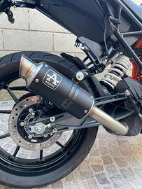 Vendo splendida KTM 390 Duke (Model Year 2023) nell'elegante colorazione Black. La moto è stata acquistata nuova in concessionaria ufficiale il 30/09/2023 ed è stata tenuta con cura maniacale, sempre in garage. DATI TECNICI E MANUTENZIONE: -Chilometraggio: Attualmente 5.191 km (ancora in uso) -Manutenzione: Sempre e solo tagliandata presso officina autorizzata KTM. -Ultimo tagliando: Eseguito il 06/10/2025 con ricevuta -Doppia chiave -Documentazione completa -La moto è meccanicamente perfetta e pronta a partire, senza alcun intervento da fare. ACCESSORI E MODIFICHE: -Scarico: Arrow -Sella: Borsati selle (migliora notevolmente il comfort nei tragitti medi-lunghi) -Portatarga sportivo: Motor Racing Shop. NOTA IMPORTANTE: Insieme alla moto consegno anche tutti i pezzi originali (scarico di serie e portatarga originale).