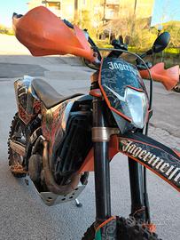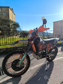 Vendo KTM 450 del 2008 in ottime condizioni generali. La moto è stata oggetto di un importante lavoro di revisione: motore completamente rifatto a nuovo con sostituzione di componenti principali come pistone, fasce, biella, cuscinetti di banco e guarnizioni. Anche il sistema elettrico è stato revisionato, così come l’accensione. Sospensioni completamente sistemate: forcelle e ammortizzatore revisionati. Impianto frenante in perfette condizioni con dischi e pastiglie nuovi. Gomme all’80%. Moto sempre tenuta in garage, utilizzata poco e con poche ore di utilizzo su sterrato. Mezzo curato e mantenuto con attenzione. Non vendo per necessità ma per inutilizzo e passaggio a cilindrata superiore. Disponibile equipaggiamento completo da enduro. Prezzo trattabile Per ulteriori informazioni contattatemi.