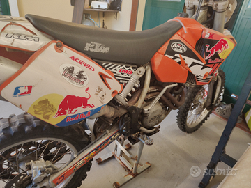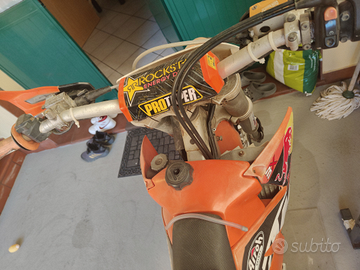 Vendo la mia amata ktm,usata solo per due/3 stagioni di enduro,poi messa da parte e usata sporadicamente per qualche uscita domenicale. Do cavalletto centrale,altro faro,borsello porta documenti,ecc ( stivali,protezioni,due caschi,visiera,due uniformi complete,guanti,ecc) prezzo leggermente trattabile.