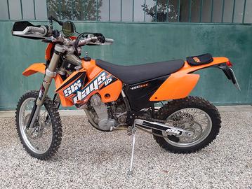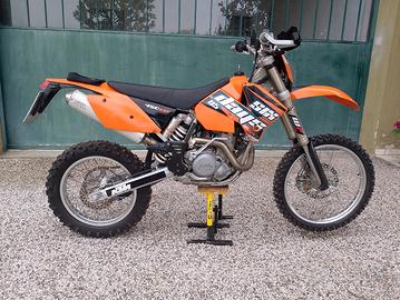 VENDO, come da oggetto, KTM 450 EXC 2004, già versione 2005 con scarico a tubo singolo, anziché a tubo doppio. A libretto depotenziata a 12 kw, bollo € 42,46 scad. luglio, pagamento entro agosto, posti a sedere uno. Chilometri e ore, come da foto, originali, computer contachilometri non manomettibile e tutto funzionante. Motore originale e mai manomesso. Tenuta benissimo, solo uso svago / amatoriale. Avviamento elettrico con batteria litio nuova, grafiche 2005, parafango e porta faro 2010, para motore alluminio, paramani nuovo. Luci, frecce, clacson, specchietto, portatarga, tutto a codice e perfettamente funzionante. Appena revisionata e tagliandata da officina specializzata enduro/cross, documentato (v.foto). Moto perfetta, non serve fare niente, pronta all'uso. Visibile e da provare anche con meccanico o persona di fiducia. Compreso, come in foto: Alza moto Acerbis, scarico racing non omologato, codino posteriore porta targhino, tappo chiudi marmitta e chiudi filtro aria x lavaggio. Prezzo non trattabile, grazie. Non spedisco, solo ritiro in loco. Per qualsiasi informazione: al cell 3358053782 o in questa chat
