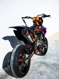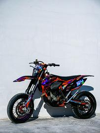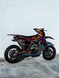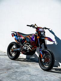 Vendo Ktm Excf 450 del 2014 La moto ha 100h,cambio olio eseguito sempre ogni 25h Frizione nuova con 15h Ciclistica: - Disco Brembo anteriore 320mm - Piastre di sterzo 6days - Forcelle rifatte - Pinza freno anteriore Brembo M50+ pastiglie nuove - Pinza freno posteriore revisionata + pastiglie nuove Estetica: - Kit plastiche originali 6days 2014 - Kit plastiche nere graficate -Kit plastiche bianche graficate - Para serbatoio superiore in carbonio (GPcompositi) - Para serbatoio inferiore in carbonio (GPcompositi) -convogliatore aria pinza anteriore (GPcompositi) -paratelaio in carbonio (CMTcompositi) -paraspruzzi in carbonio (CMTcompositi) -copri carter accensione e frizione (polisport) -manubrio viola (Renthal) - Copri forcelle - Leva del cambio In ergal - Pedane in Ergal - Leva freno Ergal -coperchio frizione (smproject) -coperchio bocchetta freno ant(smproject) - Corona 44 denti nera - Pignone 14 denti - Faro led PREZZO TRATTABILE no perditempo