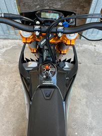 Vendo splendida ktm sxf 450 2024 65h di telaio e motore TRIPLA OMOLOGAZIONE (cross enduro e motard) OMOLOGATA PER DUE PERSONE OMOLOGATA CON GOMMA POST 160 La moto è veramente full monta i seguenti pezzi: Frizione antisaltellamento Cambio elettronico Terminale akrapovic Centralina con mappa dedicata carrot Carter hinson Leve in ergal Impianto frenante ant accossato completo Tappo scolo olio in ergal Tappo benzina in ergal Leva freno post in ergal Cover serbatoio in carbonio Paratelaio in carbonio Parafanto ant in carbonio Faro ORIGINALE Ktm Riser manubrio scar in ergal Piastre vm racing da motard Leveraggio mono vm racing da motard Preparazione mono e forcella da motard