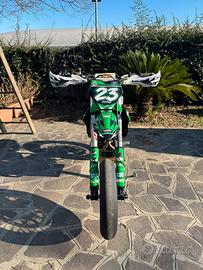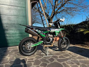 Come da titolo vendo fantistico Ktm Smr 450 PRONTO PISTA del 2025. La moto si presenta in condizioni pari al nuovo, solamente 26h di utilizzo SOLO ASFALTO! Tagliandata ogni 3H. La moto monta i seguenti pezzi: CICLISTICA: -Forcelle wp con cartuccia cone valve preparata da Tiziano monti -Mono wp con xtrig e leveraggio Vmracing preparato da Tiziano monti -Impianto frenante completo Accossato: -Pompa freno 16x18 Accossato -Pinza Accossato Cnc by Vmracing -Disco Accossato -Piedini radiali by Vmracing -Forcellone accorciato -Pedane Scar Supermoto MOTORE: -Lavorazione testa -Cuffiotto aspirazione -Centralina Carrot con mappa dedicata -Doppio Scarico completo Vmracing POWERPARTS: -Paramani Racetech Raptor -Paramotore Acerbid -Manubrio neken -Gangio partenze Scar Compreso nel prezzo cedo scarico originale e qualche altro ricambio. Per maggiori informazioni non esitate a contattarmi. PREZZO TRATTABILE! NO PERDITEMPO! NO OFFERTE RIDICOLE! NON SCAMBIO! NON VENDO PEZZI A PARTE! MOTO TARGABILE!