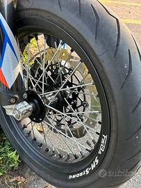 Vendo KTM 450 sxf 2021 Moto immatricolata nel 2024 (revisione valida fino al 2028), targata, tripla omologazione, con la 5' MARCIA aggiunta. Moto con 100h ma usata da una ragazza (pistone rifatto a 60h) Forcelle e mono rifatti e tarati motard Impianto elettrico Energy sistem completo Pompa radiale accossato 16x18 Pinza radiale Brembo M50 100mm fresata Cerchi motard 17 faba sm strong gommati (gomme Diablo rosso Il come nuove) Trasmissione nuova Porta targa gt lab reclinabile Frizione nuova Tagliando appena fatto Moto tenuta maniacalmente, vendo per inutılizzo.
