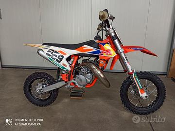 Ktm 50 sx 2020 totalmente originale, nazionale con manuale d'uso , tot ore 150, a 120 ore revisionato completamente il motore con ricambi originali, tutto documentato, trasmissione 5 ore! No gare, solo uso divertimento, cambio olio ogni uscita, gomma ant nuova e post 80%.Moto pronta all'uso.