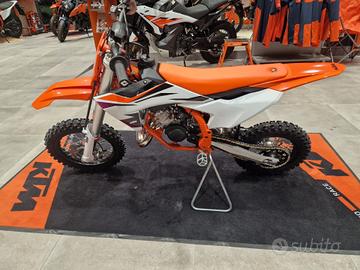 La KTM 50 SX è costruita attorno a un avanzato telaio in acciaio, che ospita un potente motore, una forcella WP XACT AER aggiornata, un monoammortizzatore WP XACT e un nuovo, avanzato sistema frenante idraulico Formula.