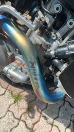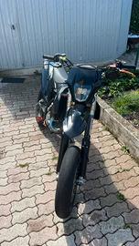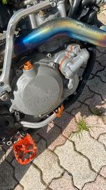Vendo per cambio moto NON OMOLOGATA MOTARD Appena fatto tagliando completo (ogni 20h) Scarico akrapovic completo in titanio Impianto frenante tutto brembo con pompa radiale accossato Leva frizione regolabile Zucco sospensioni anteriori tarate Ultimo cambio pistone 120h fa (andrebbe fatto ogni 200) tutto documentato Tenuta sempre in garage Portatarga regolabile Fari led Accensione sia elettrica che pedalina Fornisco anche scarico,frecce,specchietti ecc originali