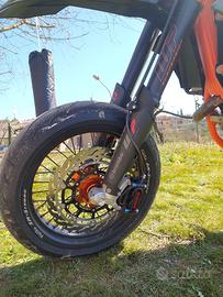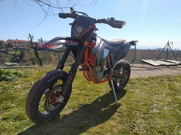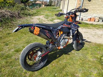 KTM 510 EXC Six Days - 2013 - Condizioni eccellenti - 67 ore reali con disponibilità di eventuali accertamenti da parte dell'acquirente. Vendo KTM 510 EXC Six Days del 2013, versione Six Days (modello top di gamma con dotazioni e componenti premium). La moto ha solo 67 ore di utilizzo effettivo -- usata pochissimo e sempre con cura maniacale. Dati principali Cilindrata: 510 cc Ore totali: 67 Omologazione: Enduro/Motard (Omologazione Motard già effettuata) Condizioni generali: eccellenti, pronta per qualsiasi prova, appena revisionata) Componenti e modifiche Kit enduro completo con plastiche, impianto frenante, ruote e cerchi praticamente nuovi Pignone -2 denti, montato nuovo (rapportatura ottimizzata) Cerchi Motard FABA RACING Gomme Motard Mitas praticamente nuove Pastiglie di tutti gli impianti frenanti in possesso in condizioni ottime. BATTERIA sostituita al Litio ( - 800gr) KIT Impianto frenante anteriore maggiorato, pinza 4 pistoncini con pompa radiale e tubo in treccia ACCOSSATO Scarico Akrapovic completo, tutto aperto Doppia mappa sul manubrio, regolazione mappe da sotto sella Faro Ghost Rider LED anteriore Faro posteriore LED omologato Impianto frecce integrato Sistema stacca batteria con chiave Plastiche nere personalizzate, replica dei modelli più recenti Grafiche custom realizzate su misura, con stile KTM ma tocco personale Specchietti nuovi (uno sinistro da sostituire per caduta da cavalletto) Cavalletto enduro originale six days Cavalletto per stoccaggio moto invernale per salvaguardare gomme e sospensioni Scarico originale Gomme praticamente nuove - circa 2/3 uscite Manutenzione e stato Moto tenuta in modo impeccabile, sempre tagliandata e pulita dopo ogni uscita. Prezzo 7.200 Moto introvabile in queste condizioni e con così poche ore. No perditempo, solo realmente interessati.