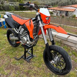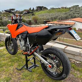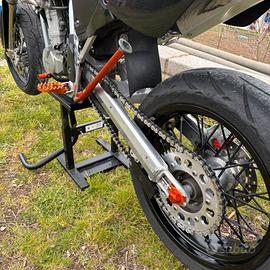 Vendo Bellissimo KTM 520 exc-r trasformato motard, la moto è in perfette condizioni ed ha svolto tutta la manutenzione ordinaria e straordinaria. La moto è depotenziata a libretto A2, e se riportata originale ha anche la possibilità di essere iscritta asi. Insieme all’equipaggiamento della moto elenco i lavori svolti : -cerchi motard originali, gommata meztler -spostapinza e disco 320mm -kit trasmissione con rapporti motard - kit plastiche completo polisport -batteria nuova, avviamento elettronico -tagliando completo olio e filtri -liquido regrigerante nuovo -filtro aria nuovo -riser in ergal con paracolpi -cavalletto in ergal -tappi fluidi in ergal -fluidi frizione e freni nuovi -pedane in ergal -puntale freno e leva cambio ergal -perni, boccole, leveraggi e gabbie rulli spazzolati e re-ingrassati -copertura sella nuova -impianto elettrico rivisto e semplificato -blocchi tendicatena con vite ergal -protezione pignone -forcellone telaietto e scarico ricromato a specchio -mono e forcelle revisionate -carburatore tarato La moto è perfetta, astenersi perditempo