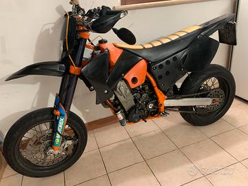 Omologato enduro e motard (ora in foto), un solo posto. Ci sono tutte le sue plastiche originali più un'altra dotazione con numero 65. Ha tutta la dotazione per enduro, comprese forcelle ed ammortizzatore, ruote da 21 e 19"alle quali mancano solo nuovi pneumatici.