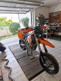 vendo come da titolo ktm 525 del 2003,la moto si presenta in ottime condizioni sia a livello estetico che a livello di motore e a livello ciclistico ,sempre tenuta in condizioni maniacali apparte qualche segnetto di normale usura ,con correlata manuntezione. la moto presenta varie modifiche tra cui tripla omolazione (motard enduro cross)la moto ora viene venduta in configurazione motard,con impianto frenante maggiorato e sospensioni tarate motard ,cerchi annodizzati,la moto inoltre monta uno scarico Akrapovic in titanio in condizioni pressoché nuove poi monta una ventola supplementare per il raffreddamento in estate, e presenta tante altre modifiche.