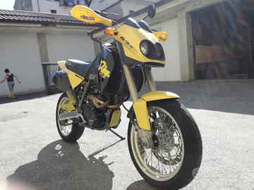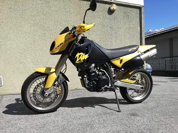 Vendo a malincuore per inutilizzo, KTM 620 DUKE LC4, anno 1996, serie numerata 523/1000, con livrea giallo perla e nero, depotenziata a libretto quindi guidabile da neopatentati, tenuta in condizioni maniacali, km 6974 originali e dimostrabili, scarico completo titanio Higashi, kit Farioli aspirazione, carburatore e camme. Estremamente performante. Gomme Dunlop seminuove, tagliando preconsegna. Moto da collezione.