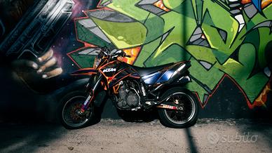 Vendo ktm 625 smc del 2006 con doppio scarico akrapovic (introvabile) a 1200€ (NOTARE BISOGNA CAMBIARE I CUCSCINETTI DEI BILANCIERI SPESA SI E NO DI 300e) LA MOTO È TARGATA ED È GIUDABILE CON A2 (28cv a libretto reali 50)