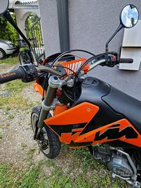 Vendo Ktm lc4 640 Supermoto anno 2006 con 13500km, perfettamente funzionante e in ottime condizioni. Carrozzeria impeccabile e ciclistica perfetta. Monocilindrica 4 tempi con accensione sia a pedivella che elettrica. Appena revisionata (fino 07/2027). Scarico Akrapovic (piu scarico originale KTM)